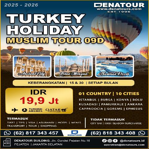 | Kota Tujuan | : | Istambul | Bursa | Capadocia | Bolu | Konya | Kusadasi | Pamukale | Ankara |